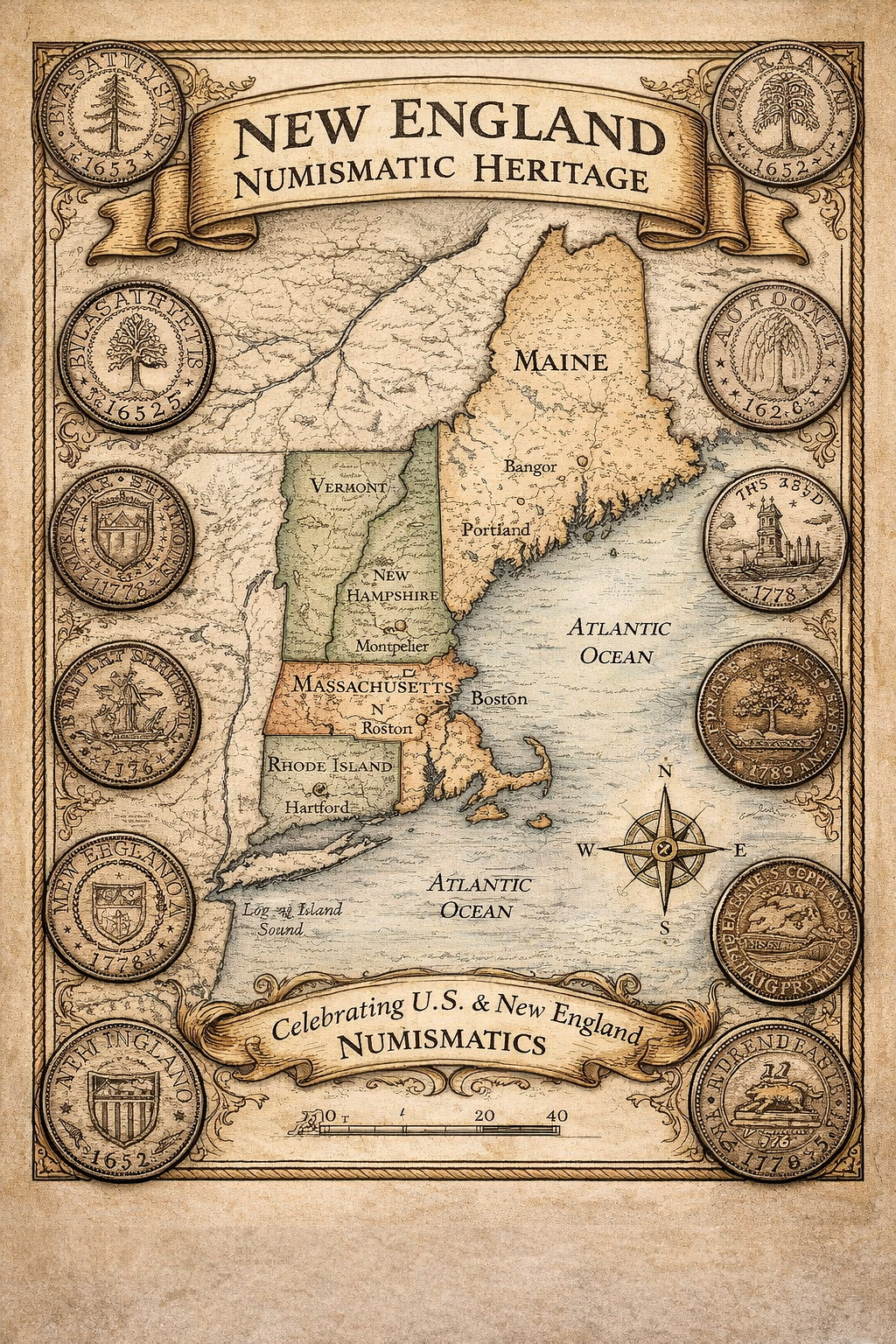 Founded in 2024, the New England Numismatic Club is a community of collectors, historians, and enthusiasts united by a shared interest in U.S. and New England coinage. We believe coins are more than currency—they are tangible records of history, art, commerce, and everyday life. Our club brings together people of all experience levels, from seasoned numismatists to beginners taking their first steps into the hobby, in an atmosphere that values curiosity, respect, and learning.